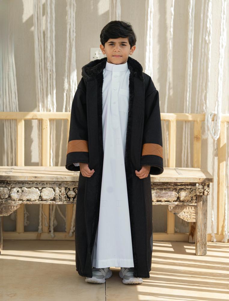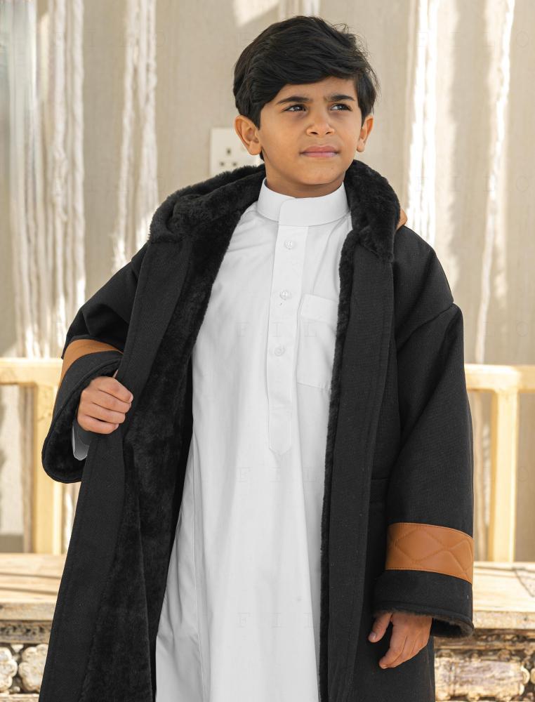 • قماش جوخ فاخر مبطن من الداخل بفرو ناعم.